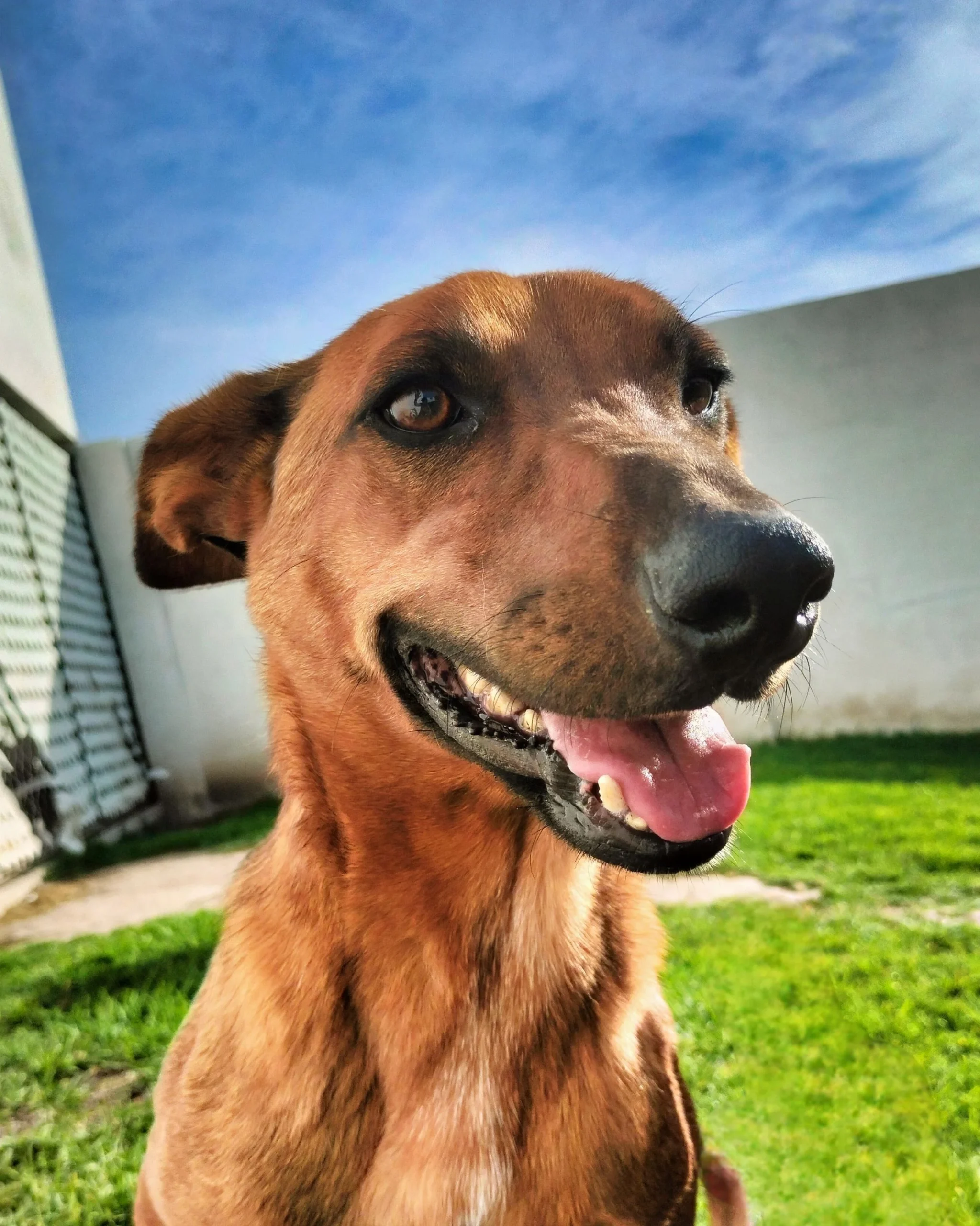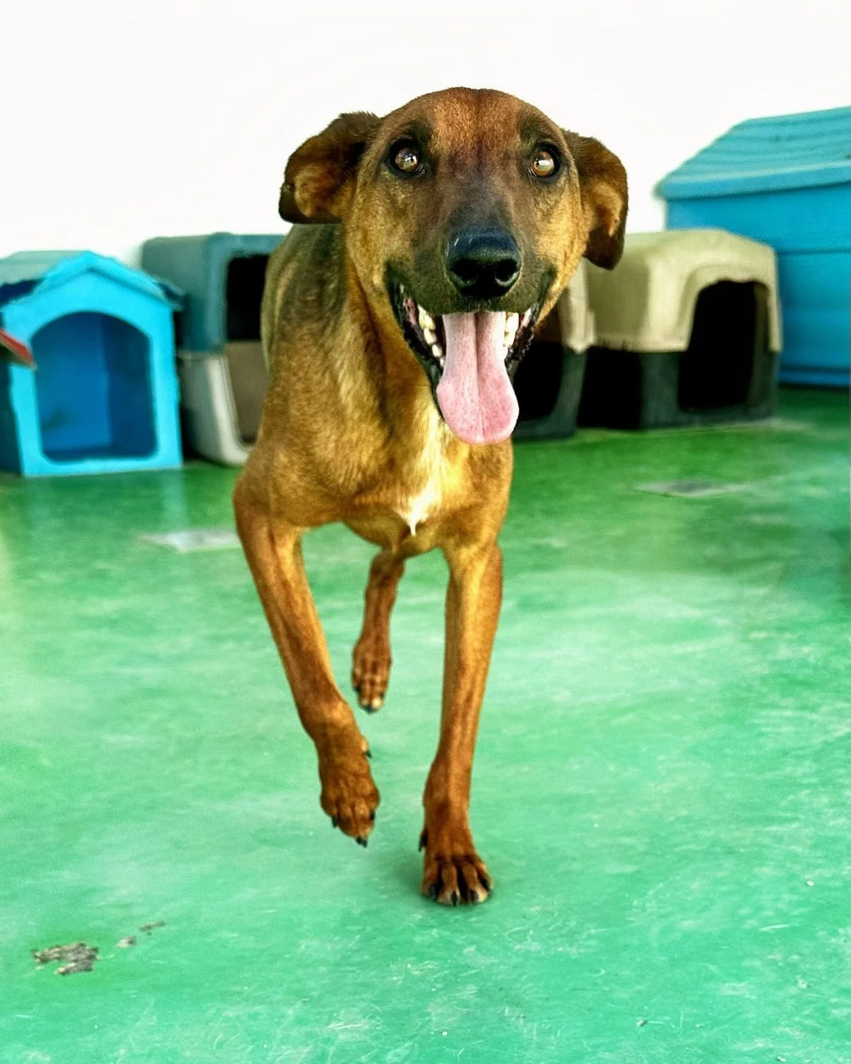 That was 2022. Choco has grown up at the shelter. He has never known a yard, a couch, a person who comes home to him at the end of the day. The shelter is the only home he has ever had — and still, he greets every day with joy.