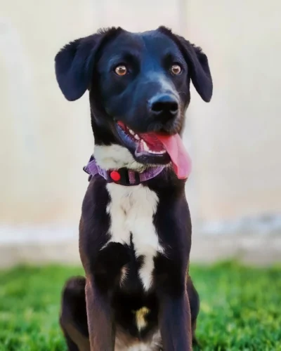 She is young, sweet, and full of energy — playful and affectionate with people and other dogs alike. Smaller in size but enormous in personality, she is the kind of dog who lights up whatever space she's in. Her coat is black with a white patch on her chest and soft grey on her paws, and she is, simply put, beautiful.