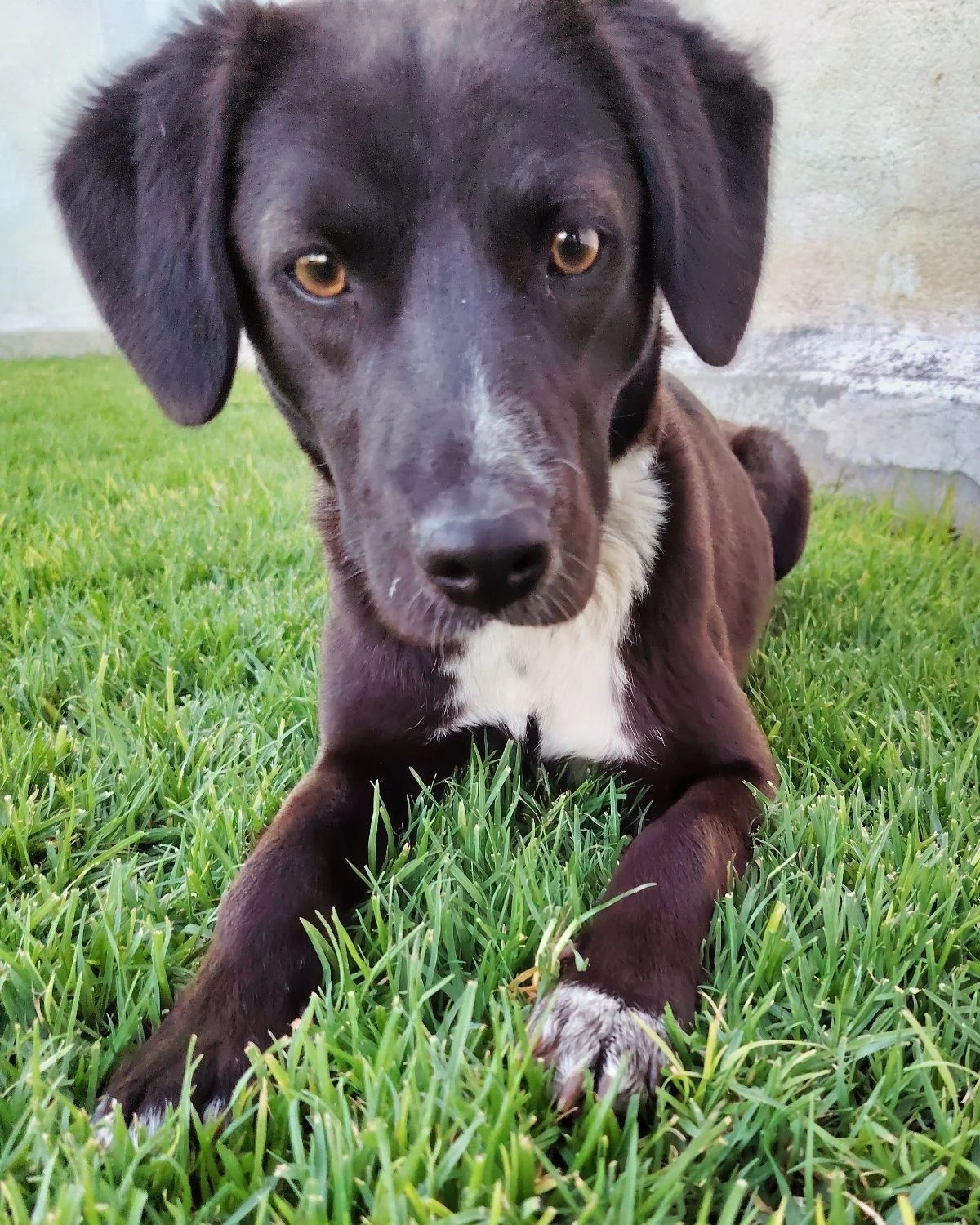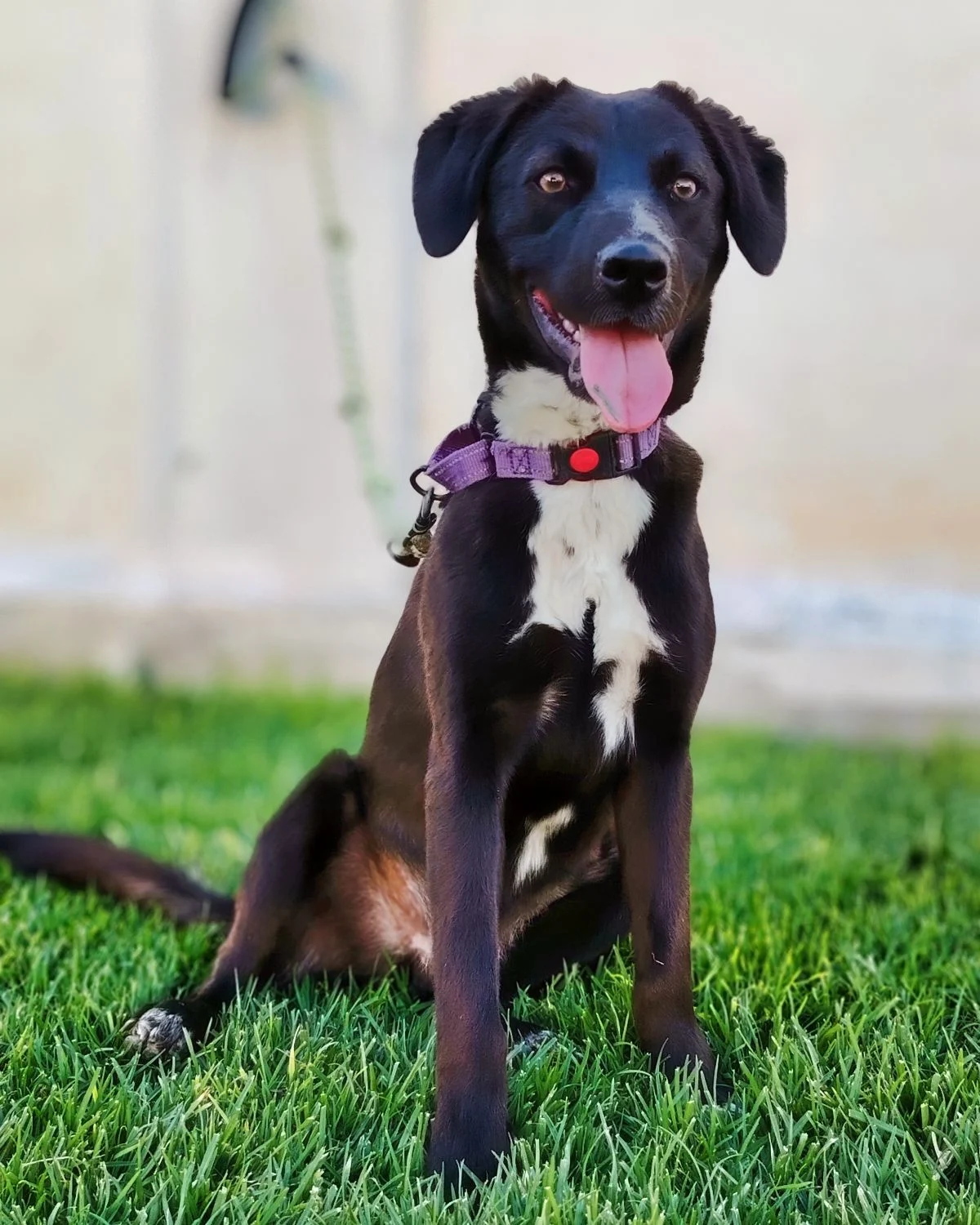 She is young, sweet, and full of energy — playful and affectionate with people and other dogs alike. Smaller in size but enormous in personality, she is the kind of dog who lights up whatever space she's in. Her coat is black with a white patch on her chest and soft grey on her paws, and she is, simply put, beautiful.