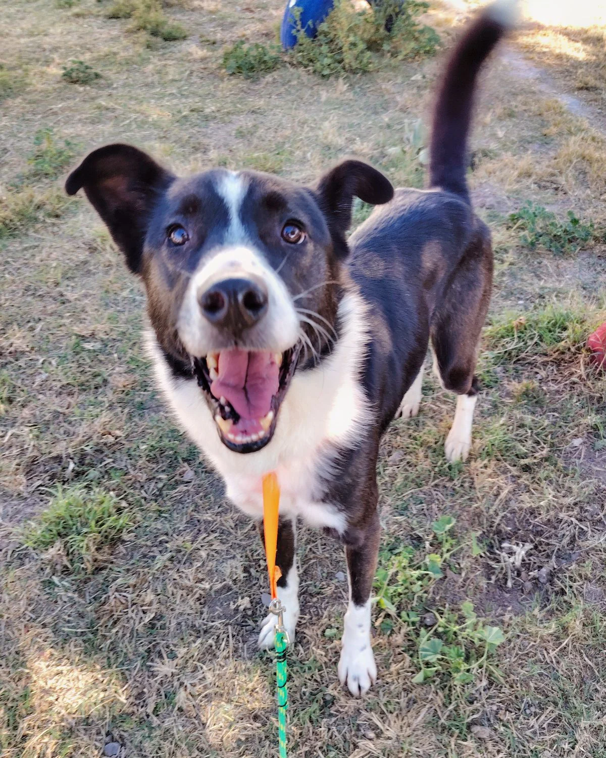 Melvin was found as a scared, disoriented puppy near the highway, still wearing a collar. We believe he once had a home — but someone either lost him or left him behind. He was only about seven months old when he arrived at the shelter, injured with a bad cut to his neck and shoulder. Thanks to good nutrition and veterinary care, Melvin healed completely — and his personality came roaring to life.